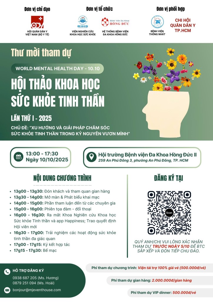 Viện Nghiên cứu Khoa học Sức khỏe trân trọng kính mời Quý Doanh nghiệp, Quý Anh/Chị đến tham dự: HỘI THẢO KHOA HỌC SỨC KHỎE TINH THẦN LẦN THỨ I – 2025